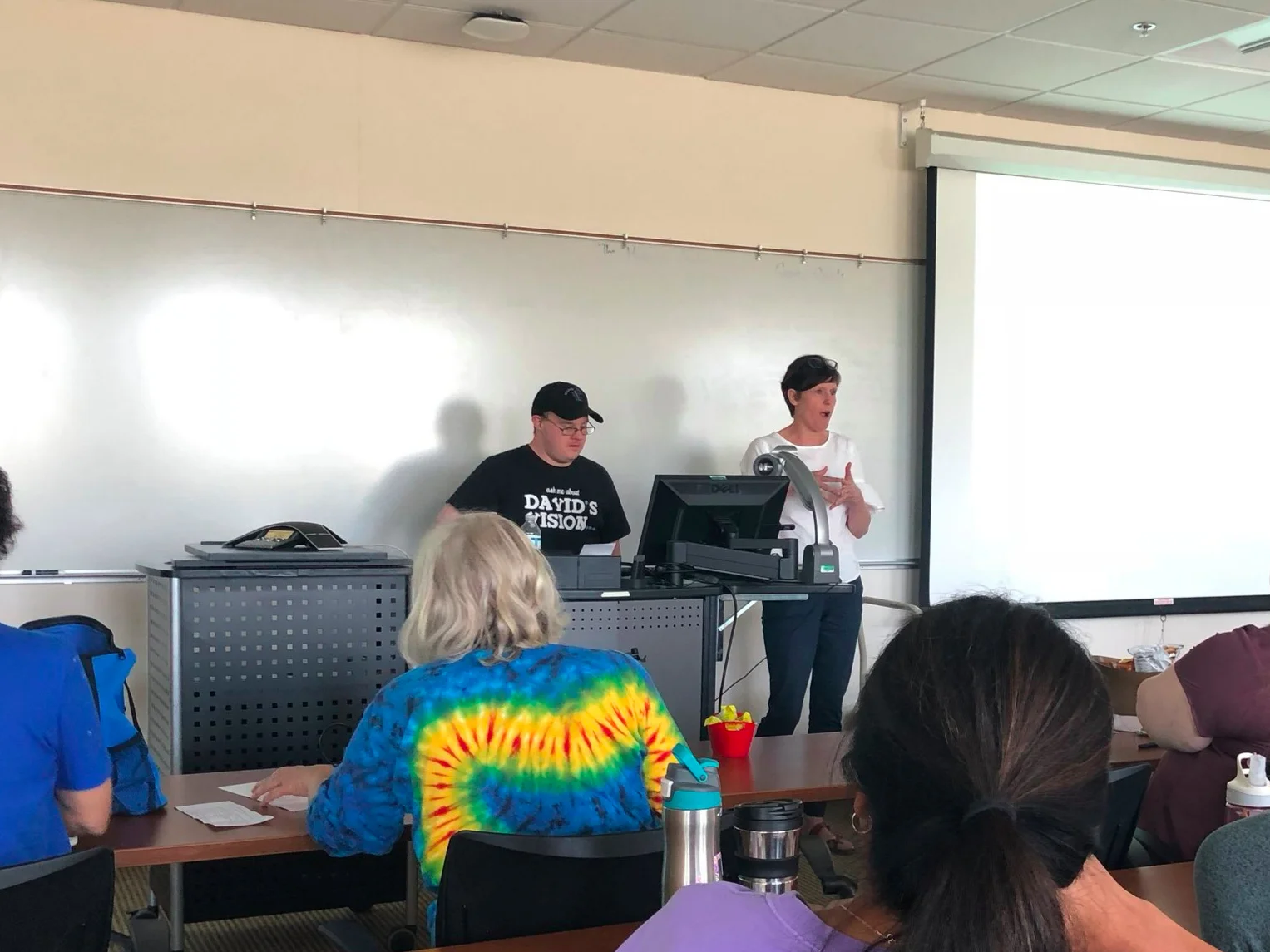 Recently we got to take a field trip to see David Maennle and his mother Becky Garland give a talk to a room full of educators at Western Carolina (Biltmore Park Campus). They talked about the plans David has for his life and the SimplyHome technology that has enabled David to live independently.